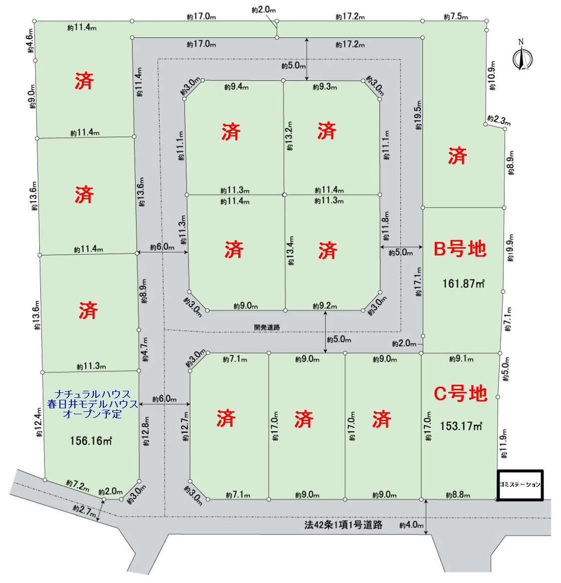 | 接道状況 | B号地:西5m幅(接道幅19.1m)C号地:南4m幅(接道幅8.8m) |